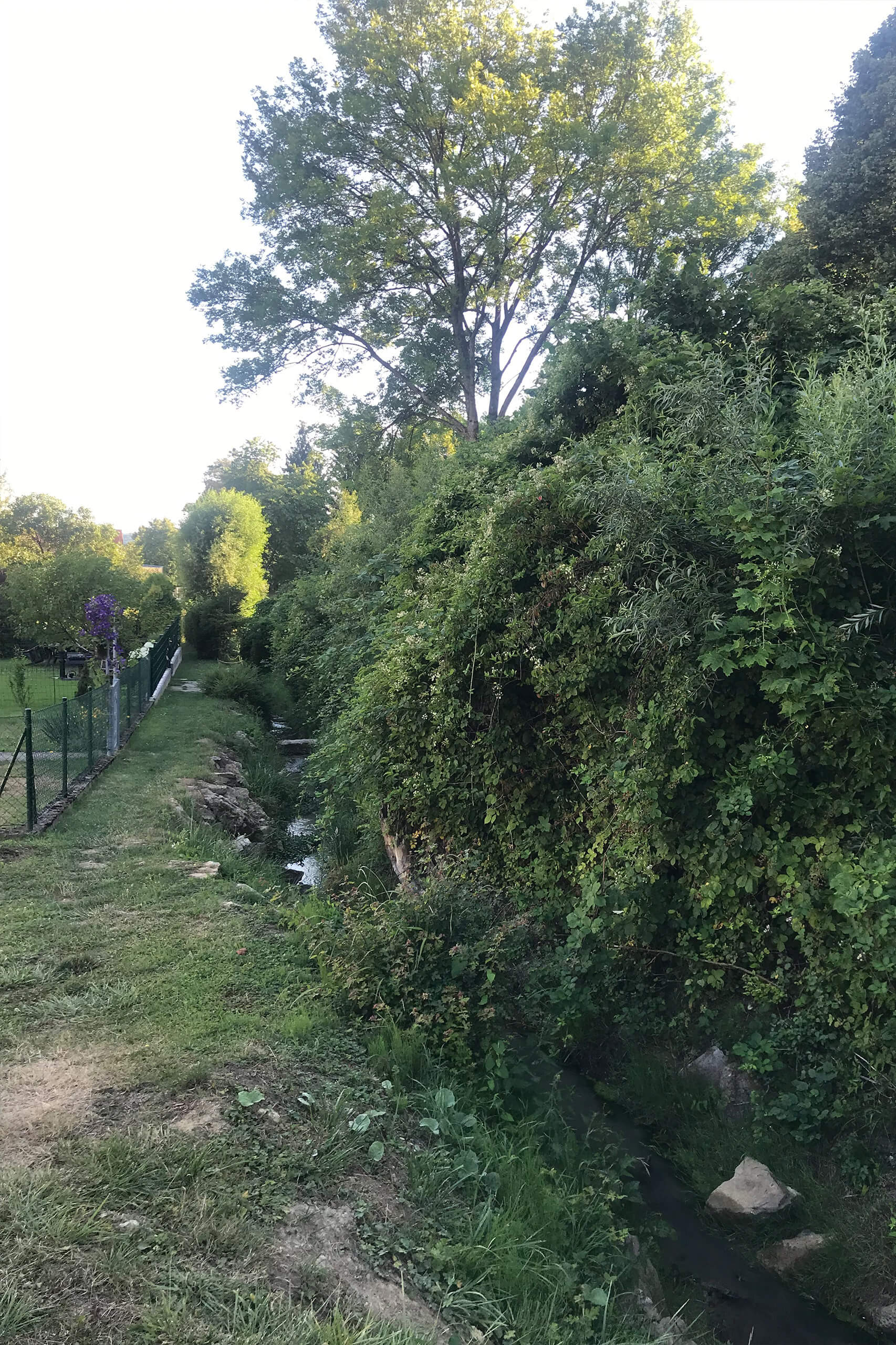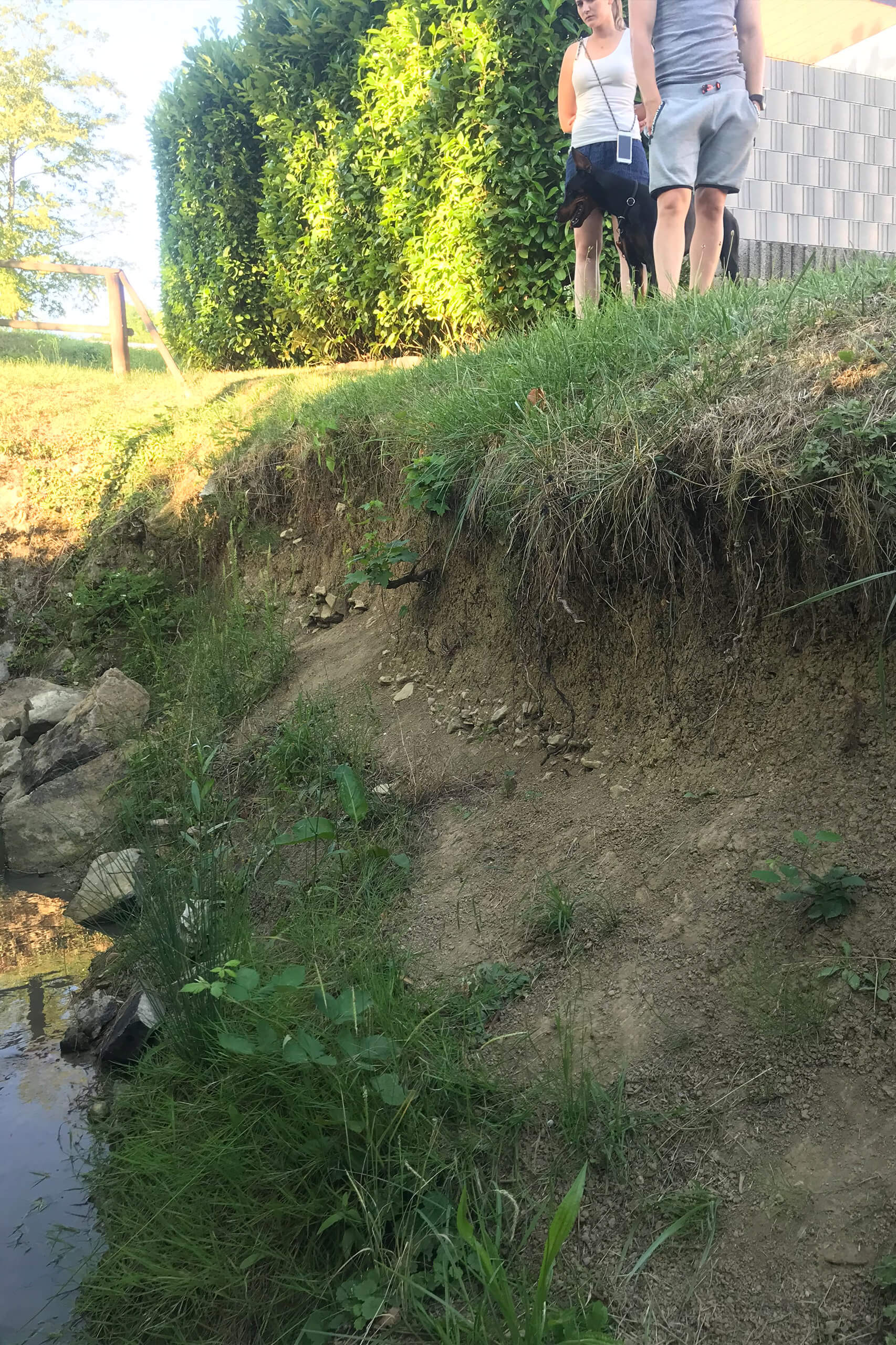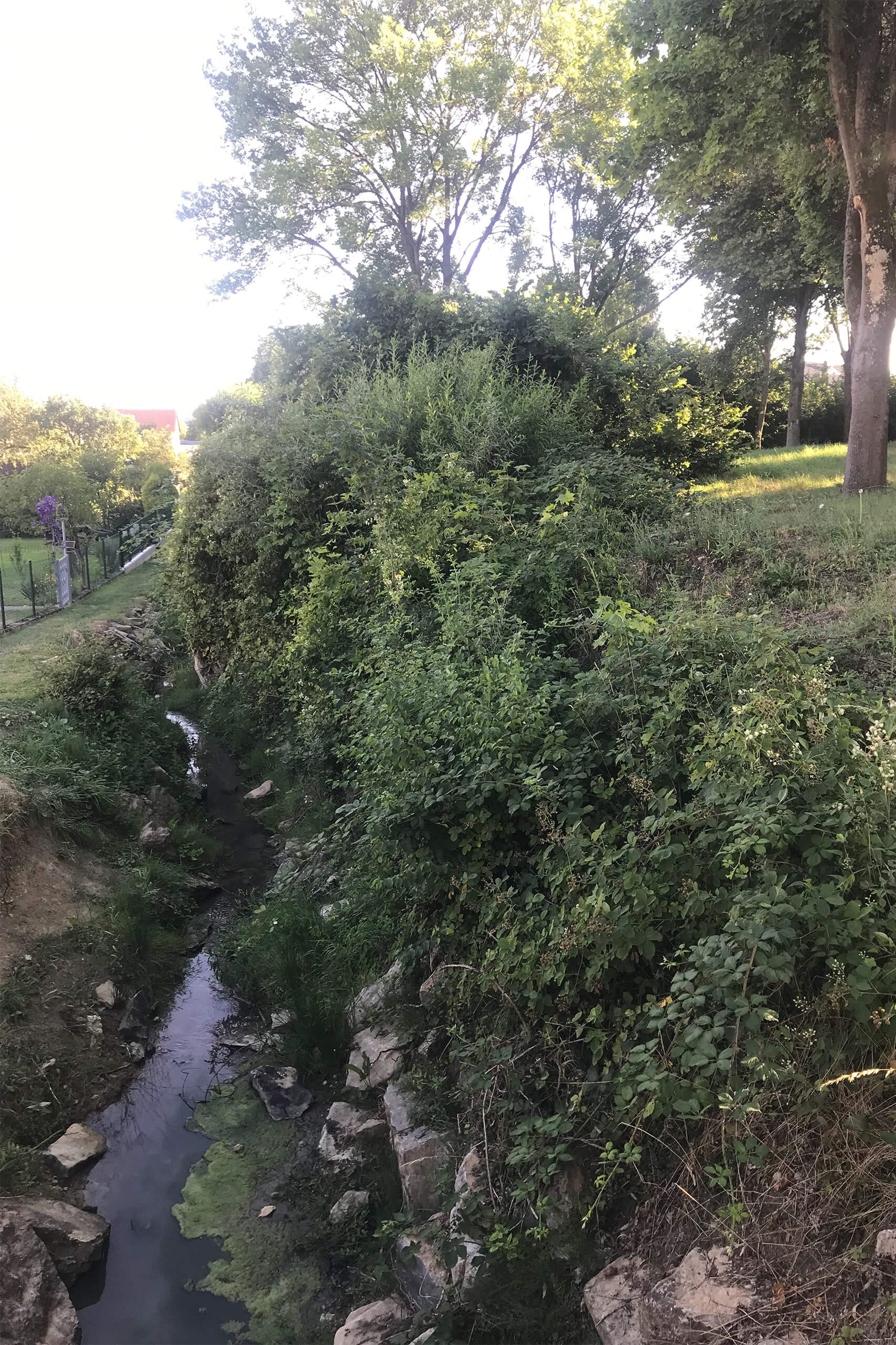 Der Bachlauf an sich, das Bachbett, auch hier wurde die meiste Pflege und Säuberung von den Anwohnern in Eigenregie erledigt. Dies ist jedoch nicht an allen Stellen möglich und darf natürlich auch nicht zum Normalzustand werden. Nach wie vor ist das Bachbett sehr instabil, dort stehende Bäume wirken alles andere als sattelfest. Auch sind einige umliegende Abläufe in Richtung Rückhaltebecken stark verschmutzt bzw. eigentlich nicht mehr vorhanden. Würden diese entsprechende gepflegt, wären die Anwohner zufrieden. Die von Gemeindeseite getroffene Aussage, dass alle 14 Tage kontrolliert wird, wurde von den Anwohnern bestritten.
