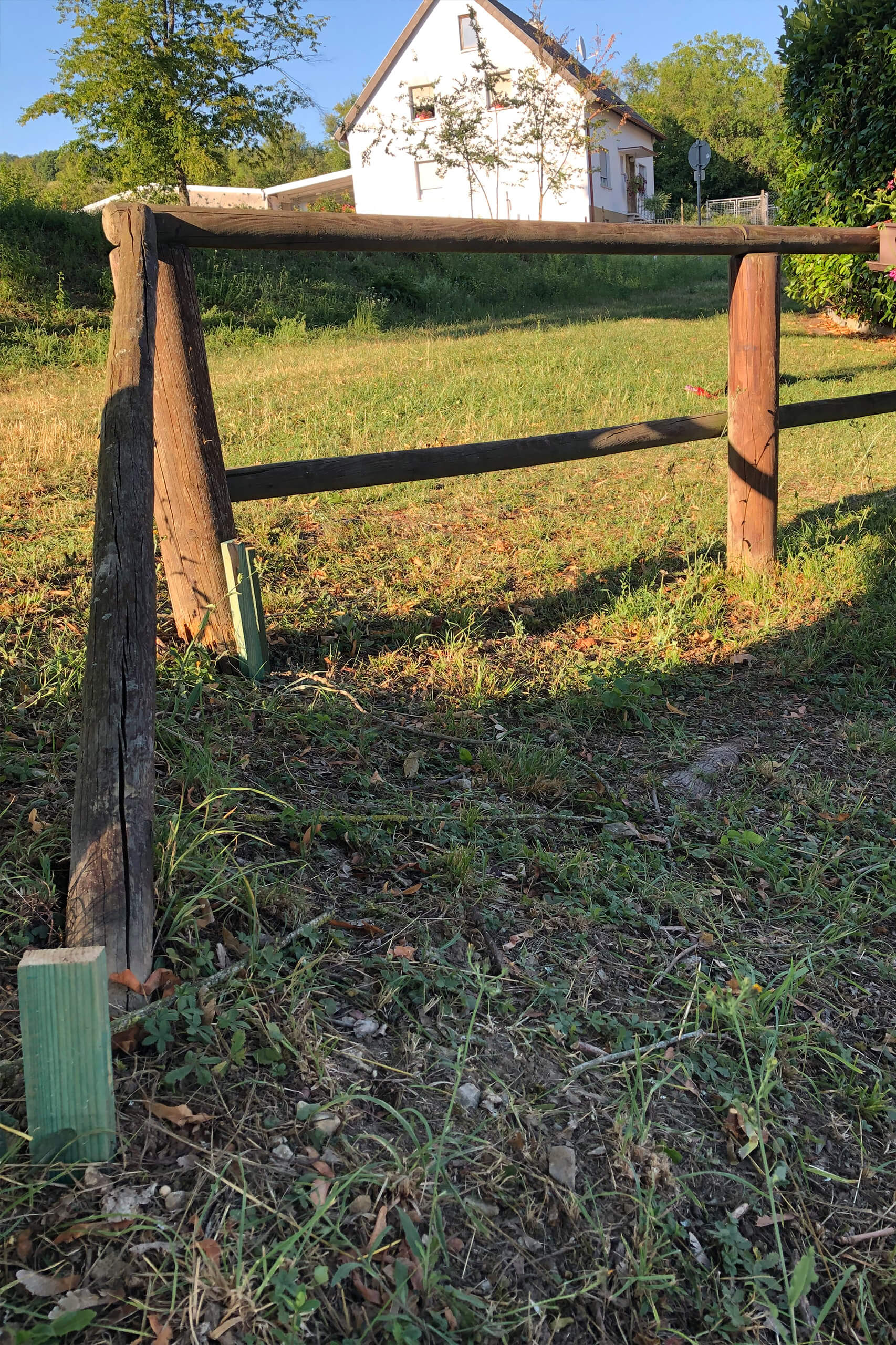 Ebenfalls erschreckend ist der Zustand des Holzgeländers, welches aus Sicherheitsgründen beim Benutzen des Weges zwischen Bach und Rückhaltebecken angebracht wurde. Es wurde bereits notdürftig von Anwohnern verstärkt, bedarf aber einer Rundumsanierung.
